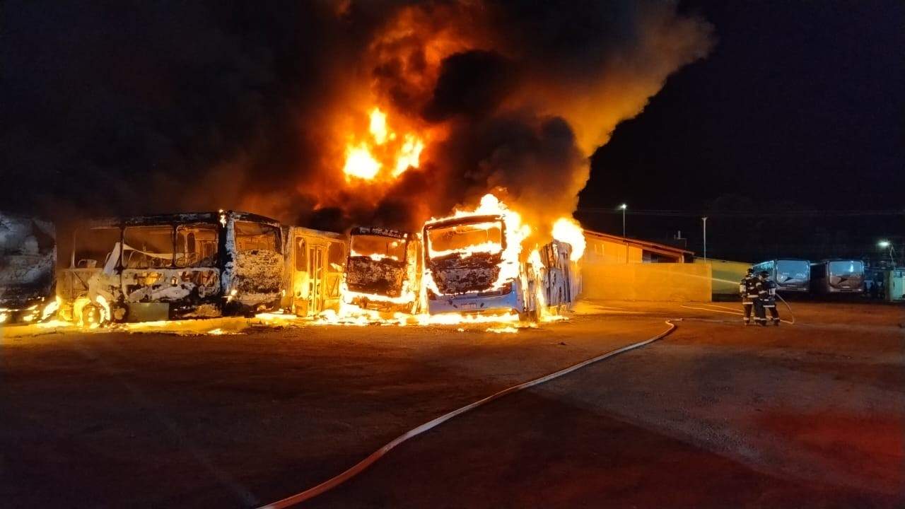 Incêndio destrói 17 ônibus na garagem de viação que opera transporte público em Caraguatatuba e São Sebastião